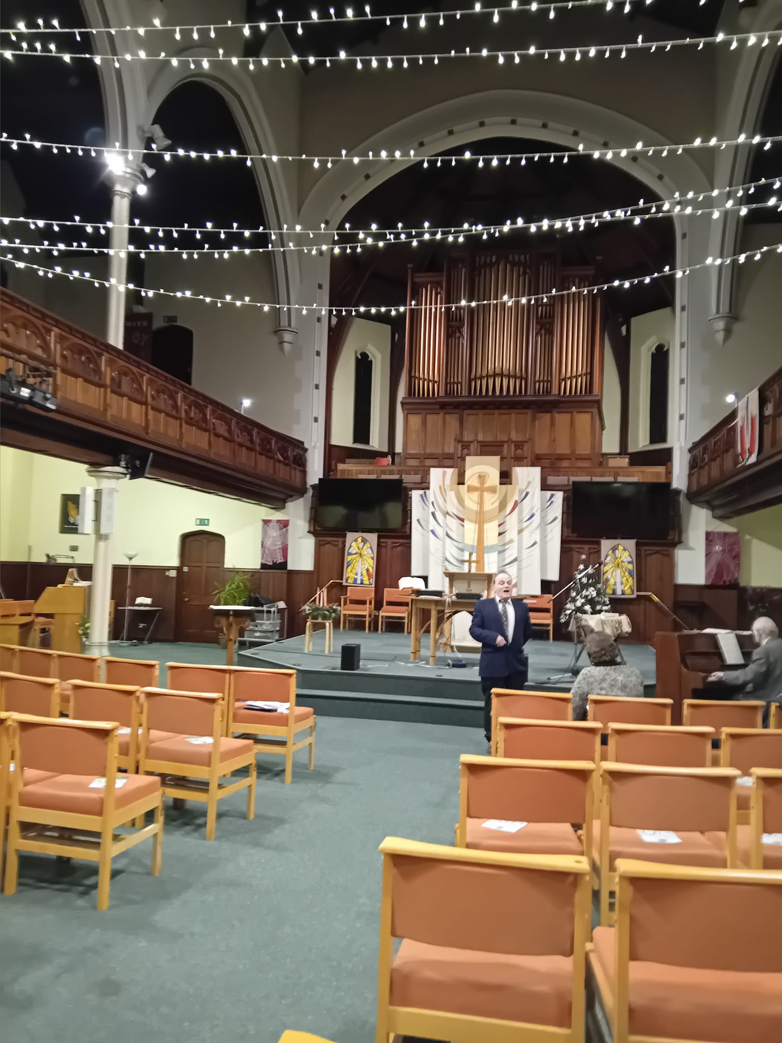 The Reverend Andrew Farrington, minister in pastoral charge of Christchurch, drew on his talents as an amateur actor in a spirited rendition of the conclusion of A Christmas Carol. He conjured up Ebenezer Scrooge, transformed and reformed by his ghostly visitors into goodness and generosity, as flamboyantly as Charles Dickens himself might have done.