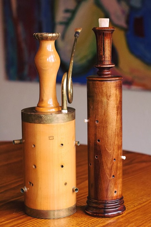Every aspect of the historical development of wind groups over the centuries was covered, referring to composers and musical periods which, coupled with improvements in instrument technology, allowed for the development of wind groups in instrument range and the increasing size of the bands. It really helped that David and his twin Robert (who, fortunately for the Society, alternate in giving us presentations) and their willing spouses brought in about fifteen instruments, some very historic, to show us how they developed. Every instrument displayed was discussed, and that included an introduction to the saxophone, which has added so much to the sound of the modern wind band. David explained how wind bands/orchestras achieved particular prominence in American High Schools, which have for a long time led the educational world in the genre.
