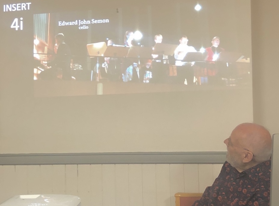 He talked about those now gone who had influenced and inspired him and made the very pertinent point that for most of his career there was no instant way of capturing scenes or sounds by using a mobile phone as we would today. This meant that he had very few visual or sound mementos from his formative years, but he did have some, such as school and university photographs and a few precious recordings of Leicester Cathedral choir led by the fondly remembered Dr. George Gray. More than fifty very short musical extracts and videos illustrated the talk, many leaving the listener wanting to hear more than just a few seconds. They ranged from 1960s psalm singing at the Cathedral and the exhilarating final bars of Walton’s Belshazzar’s Feast, to Barbra Streisand, Verdi and Herbert Howells.