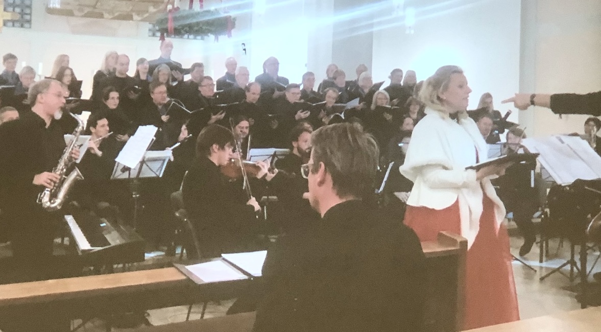 | VIDEO In the stable | Christmas Carol | D Fisher | Fink [sop] Schwerin [sax] Orch. Friedenskirche, Ehrenfelder Kantorai/Fisher | Pfarrkirche St Mechtern 04DEC22 |